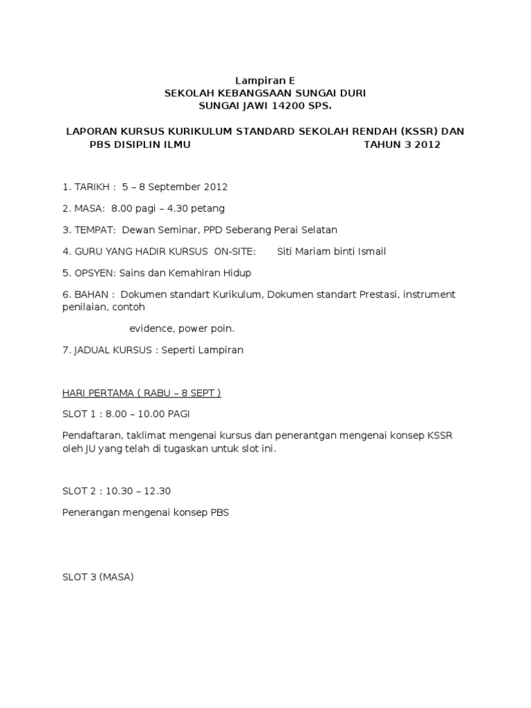 Program kerja dan laporan hasil kegiatan. Doc Contoh Format Laporan Aktiviti Kursus Kokurikulum Berkredit Nur Nabilah Academia Edu. Berikut merupakan bahan persediaan awal tahun 2021 bagi guru sekolah rendah dan.