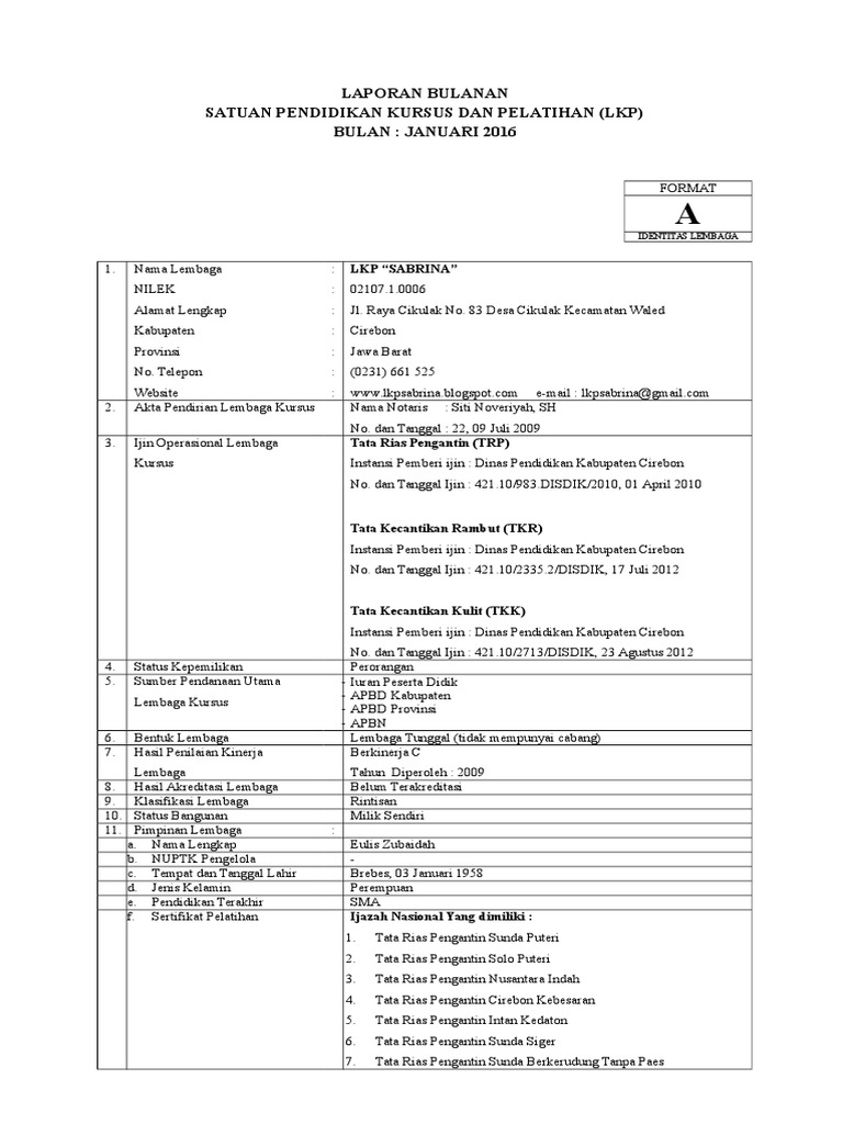 Contoh Format Laporan Kursus Mariodsxz